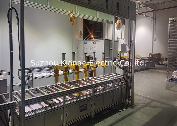 위치화 스테이션, 인스펙션 스테이션부와 배출 스테이션을 공급하면서, 버스바 자동 생산 라인은 3 부품으로 구성됩니다. 버스바가 공급 위치에 들어갈 때, 제어 시스템은 바코드 또는 이전 조립 라인에 의해 확인된 정보로부터 시험을 시작하기 위해 옳은 시험 고정대를 선택할 것입니다. 3가지 테스트는 HV 내압 테스트, 절연저항시험과 접지 테스트를 포함하여 수행될 것입니다. 핵실험이 완성된 후, 보도를 시험하는 것 발생될 것입니다.